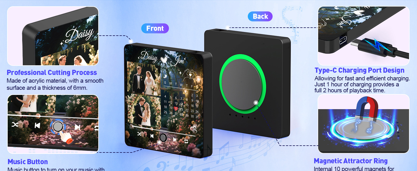 Custom Music Playback: Plays personalized songs with USB rechargeable function for convenient power supply.